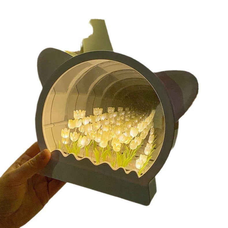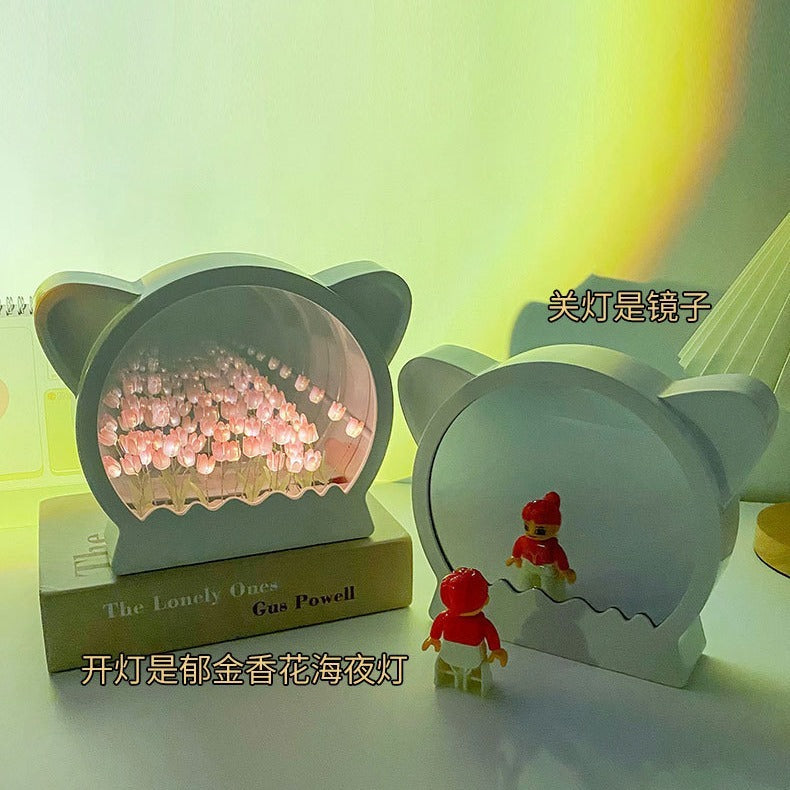 Handmade DIY Cat Head Tulip Flower Sea Small Night Lamp